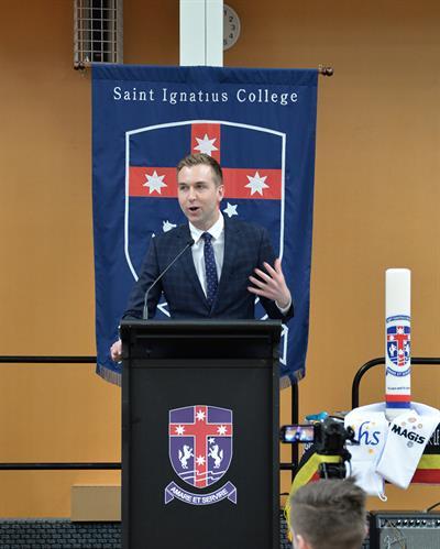 We welcomed back Nathan Currie, Founding member of the Old Ignatians and former College Captain of 2009, to the Leadership whole school assembly in November. Nathan spoke passionately about his leadership experiences at the College and as College Captain in 2009, followed by an insight into his media career and how skills developed at Saint Ignatius have been important to him. Nathan presented leadership badges to our proud new College leaders for 2018.