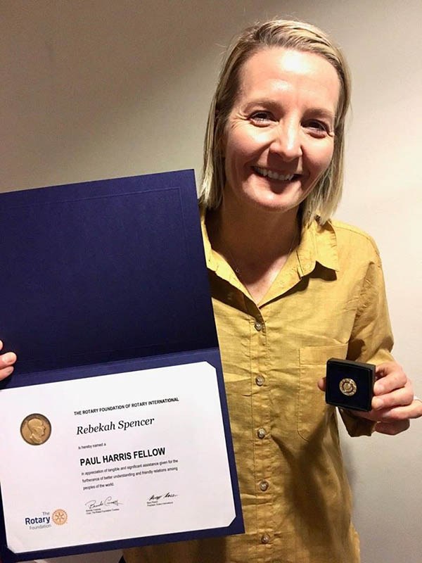 She was named as a Paul Harris Fellow - international recognition given to an individual - Rotarian or non-Rotarian - who lives or works in the area of a club in recognition of long and meritorious service to the community that fulfills the ideals of Rotary, particularly Service above Self, for her work in fundraisng for the Heart Foundation.