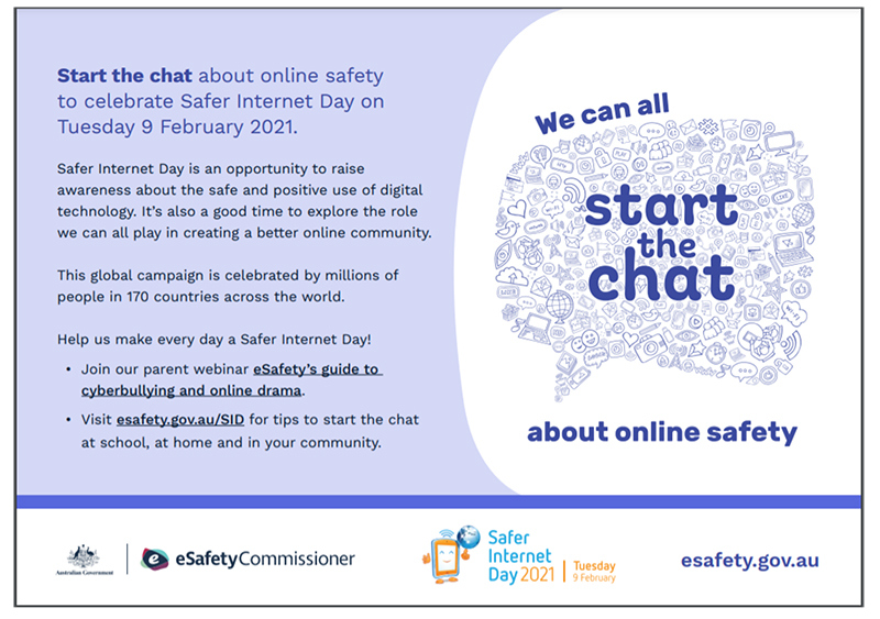 Please see flyer advertising a FREE online session around Supporting Adolescents to make positive, safe and responsible choices online offered by the eSafety Commissioner. It will be running on Tuesday 9th March from 7:00-8:00pm and you will need to register through clicking the link in the attached poster.