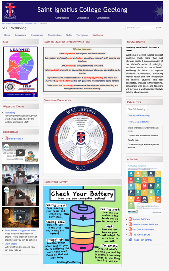 One strategic outcome of SELF is to provide a central online location within the College for students, teachers, parent and carers to access each SELF Pillar. The link below provides information on the SELF Framework and support material. This site will continually be updated to provide the necessary information to help support our students, parent, carers and staff.