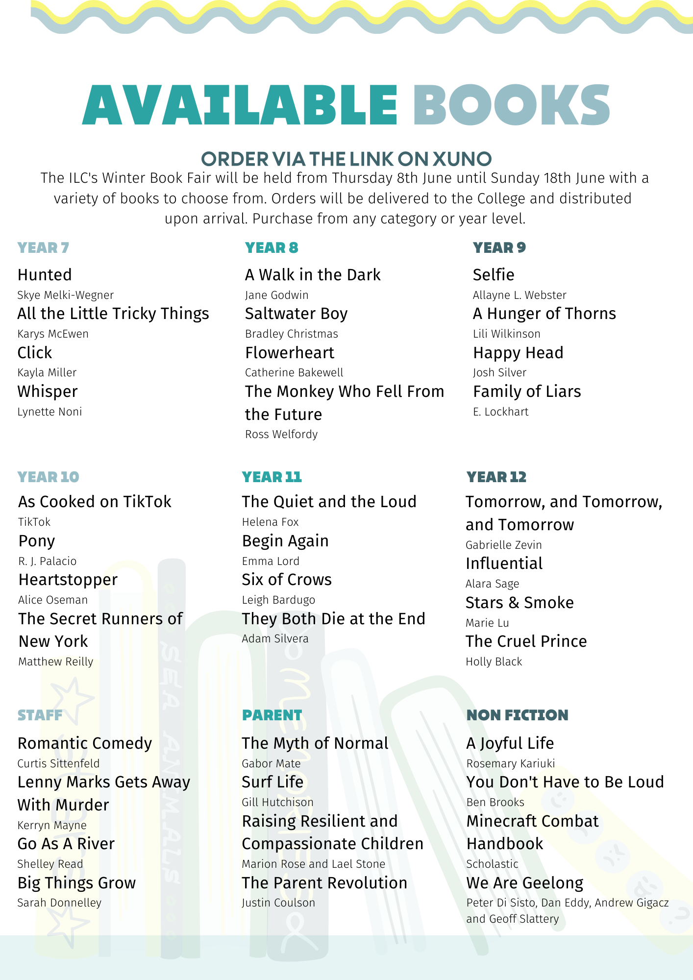 If you have any further queries regarding our Winter Book Fair please speak to ILC staff or email library@ignatius.vic.edu.au.