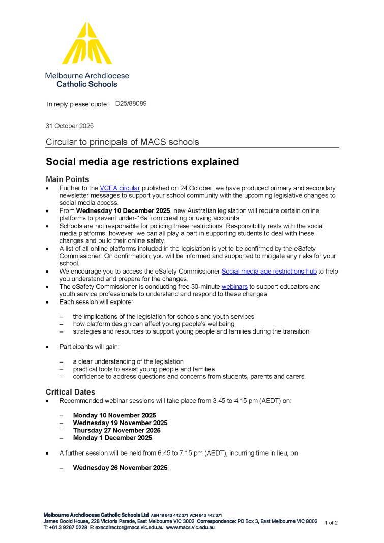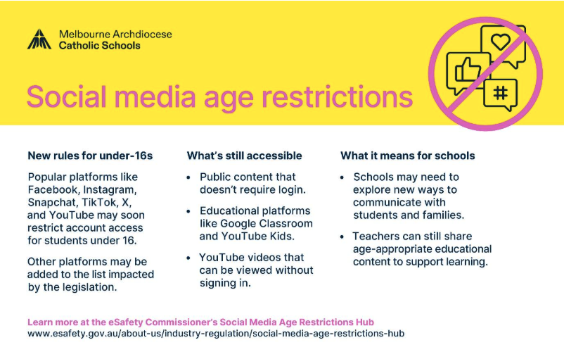 We are committed to fostering a safe and supportive learning environment at Saint Ignatius College, and this extends to our students' digital lives. As you may be aware, new legislation is being introduced that will impact how young people under 16 years old can use certain social media platforms.