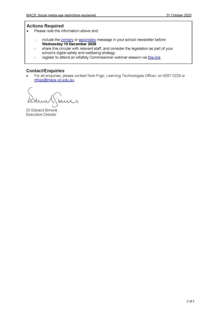 We acknowledge that the timing of the legislative change will have an impact on students during the Christmas, New Year, and summer period. For some individuals, this may represent their primary mode of communication and social engagement. We encourage families to proactively discuss how they will navigate this transition and explore ways to support their young person in maintaining meaningful connections with peers.