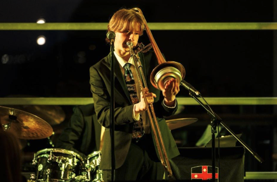 Zachary Jackson is not only a bass guitarist and vocalist, he is also an outstanding trombonist. Zach played one of his unit 4 works, “Saint James Infirmary “ by Irving Mills to the staff and students.