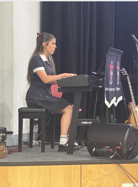Under the direction of Mrs Tania Grant, the College choir sang for the Graduation Mass. The choir was accompanied by Mr Matthew Jennings on guitar, Oliver Watson on drums and myself on keyboard.