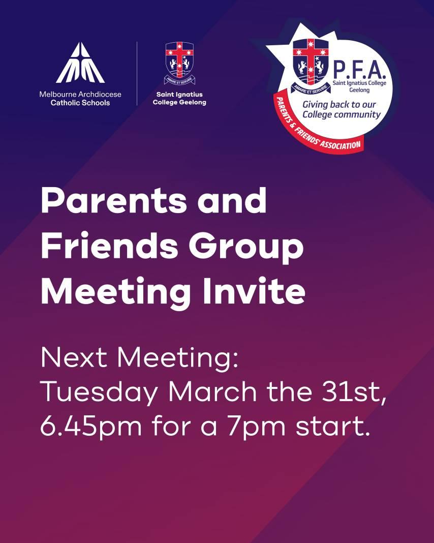 PFA MEETING | Members of the Saint Ignatius College Community are invited to the upcoming Parents and Friends Meeting on Tuesday the 31 March.