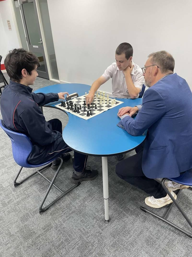 The club meets each Monday lunch in the library for a formal catch up and practice session. Participants range from year 7 to year 12 and some students have been dedicated members for the last three years. The library staff lead by Ms Rachel Snowden and her very capable staff have been amazing in supporting the chess club by acquiring competition chess sets and timing clocks and providing a designated area for practice. This chess equipment provides an opportunity for players to know what competition chess feels and looks like.